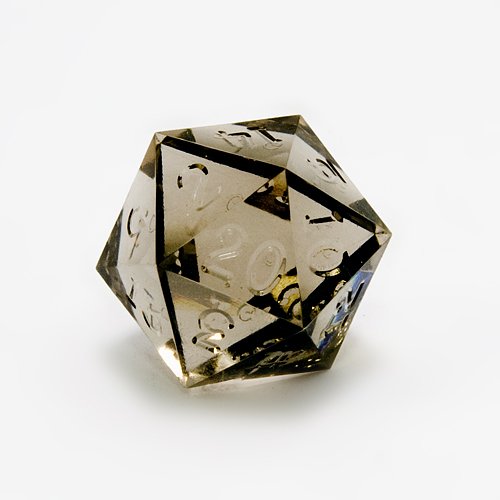 GameScience , Translucent Precision Smoke Quartz 20-Sided Dice without ink on the numbers. Sold individually. See bullet points for more details. Manufactured by GameScience, in the United States.